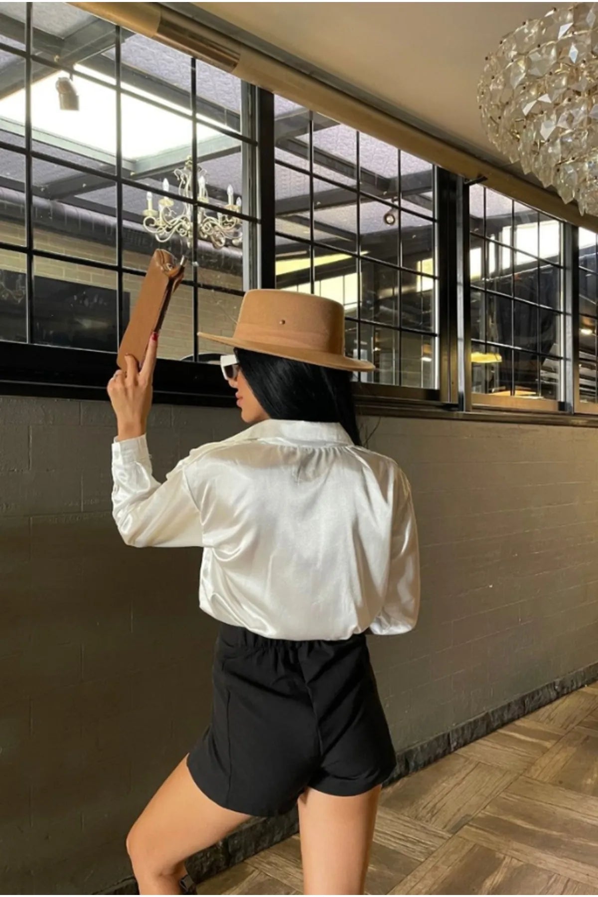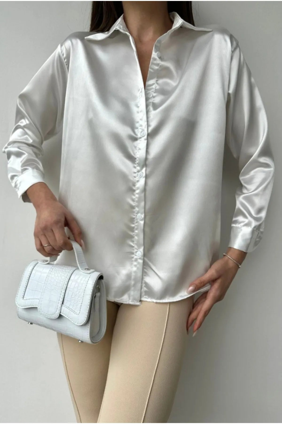 Εκρού Σατέν Πουκάμισο με Κουμπιά