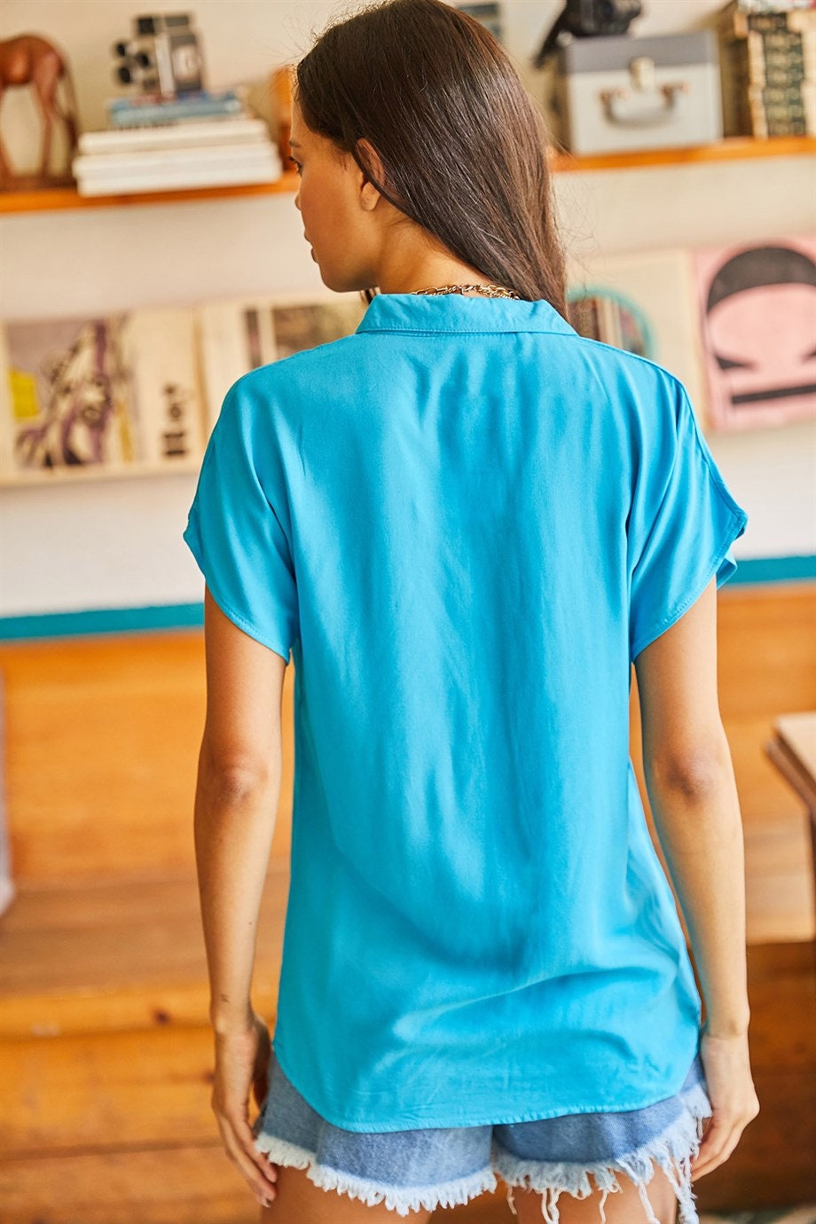 Gloria Burgundy Red Short Sleeve Button Down Shirt