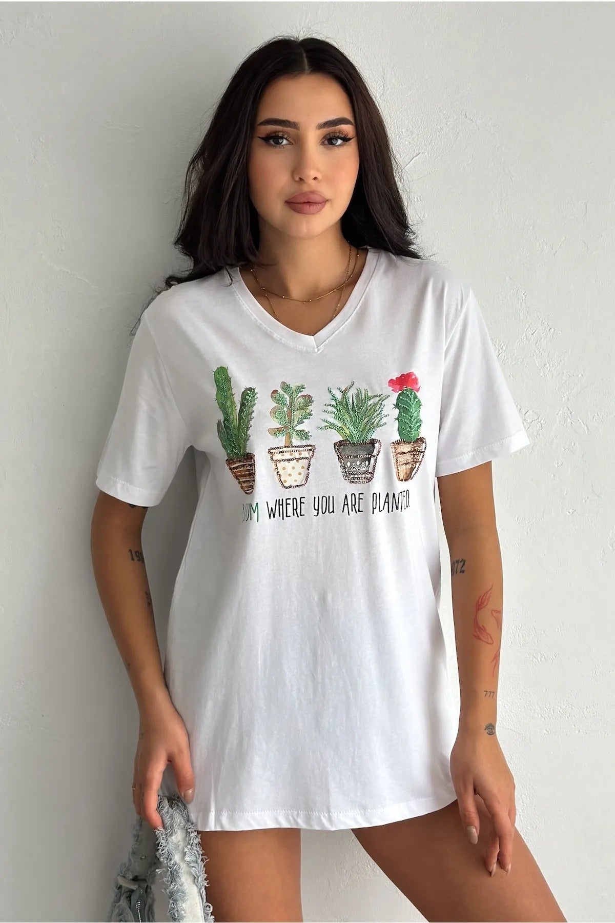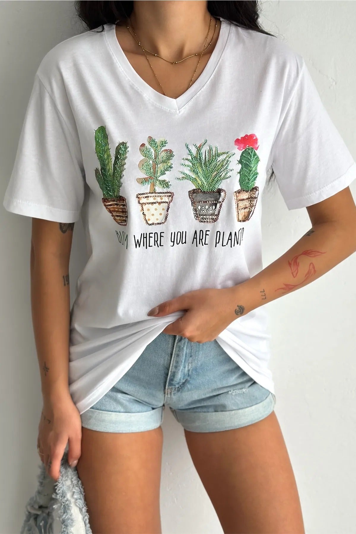 Plaj tatilleri kadar şehir maceraları için de mükemmel olan tişörtümüzle rahat ve şık bir görünüm yakalayın. Bu büyüleyici üstü koleksiyonunuza ekleyin ve tarzınızın parlamasına izin verin!