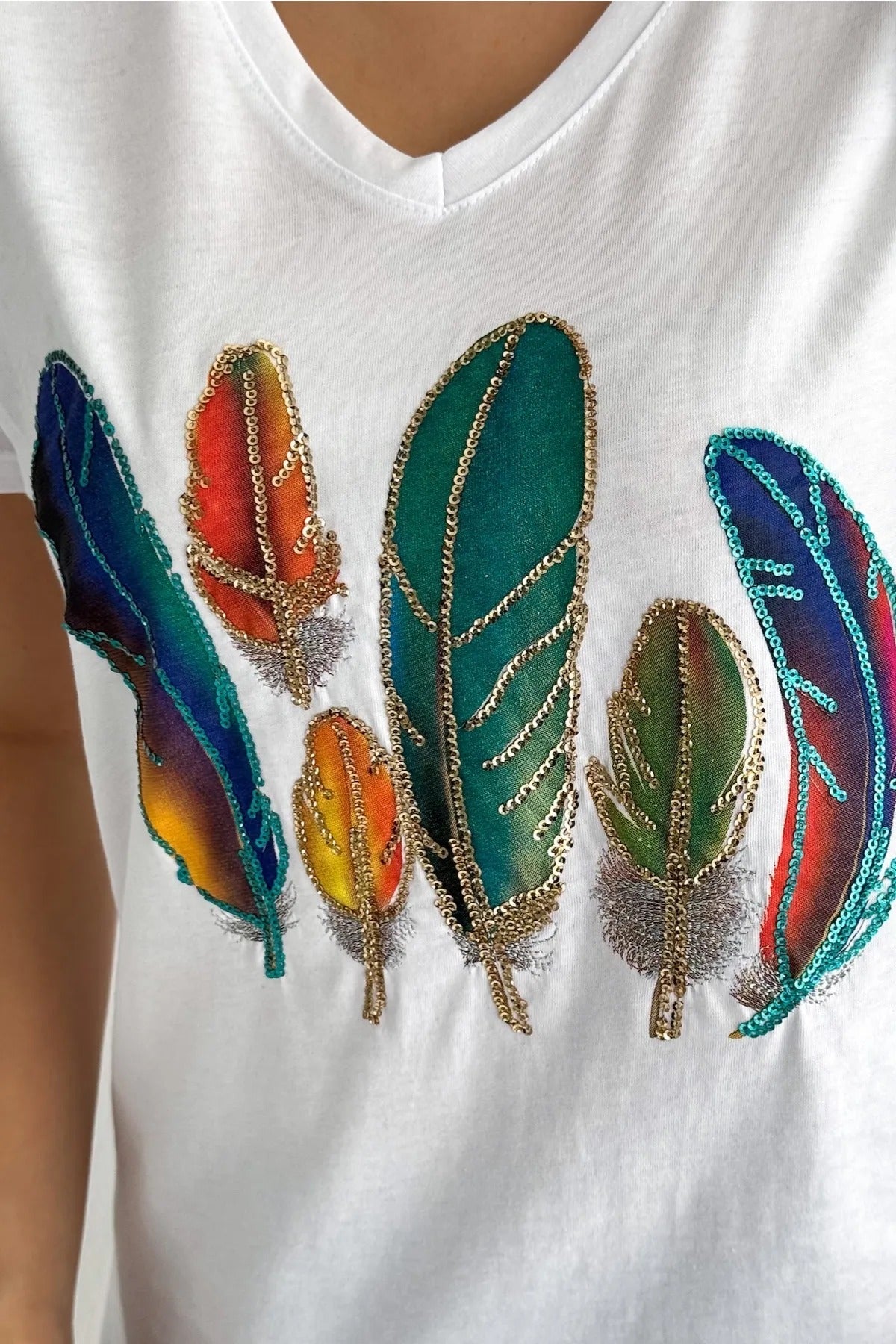 Açıklama: Payet işlemeli, ışıltılı tişörtümüzle göz kamaştırın ve sahil şıklığının özünü yakalayın. %100 pamuktan üretilen bu tişört, stilin hazine sandığı niteliğinde.