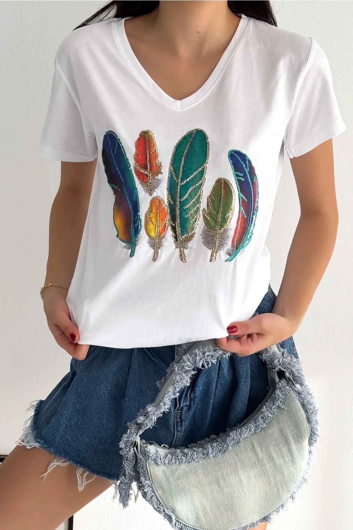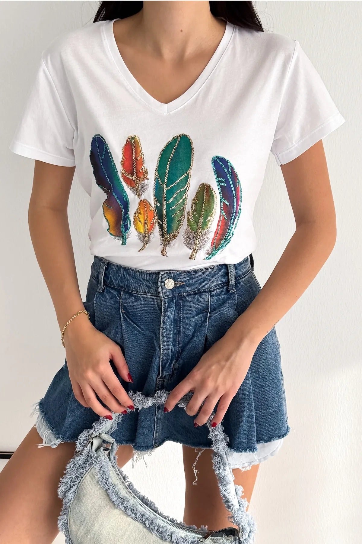 - Zahmetsizce Şık: Klasik beyaz tişört, göz alıcı detaylarla farklı bir görünüme kavuşturularak eşsiz bir temel parça haline getirildi.