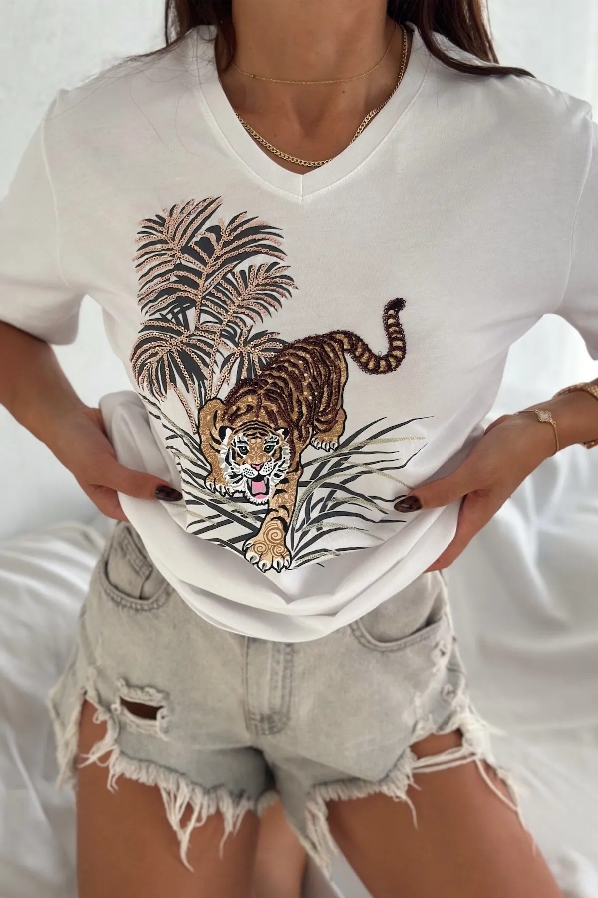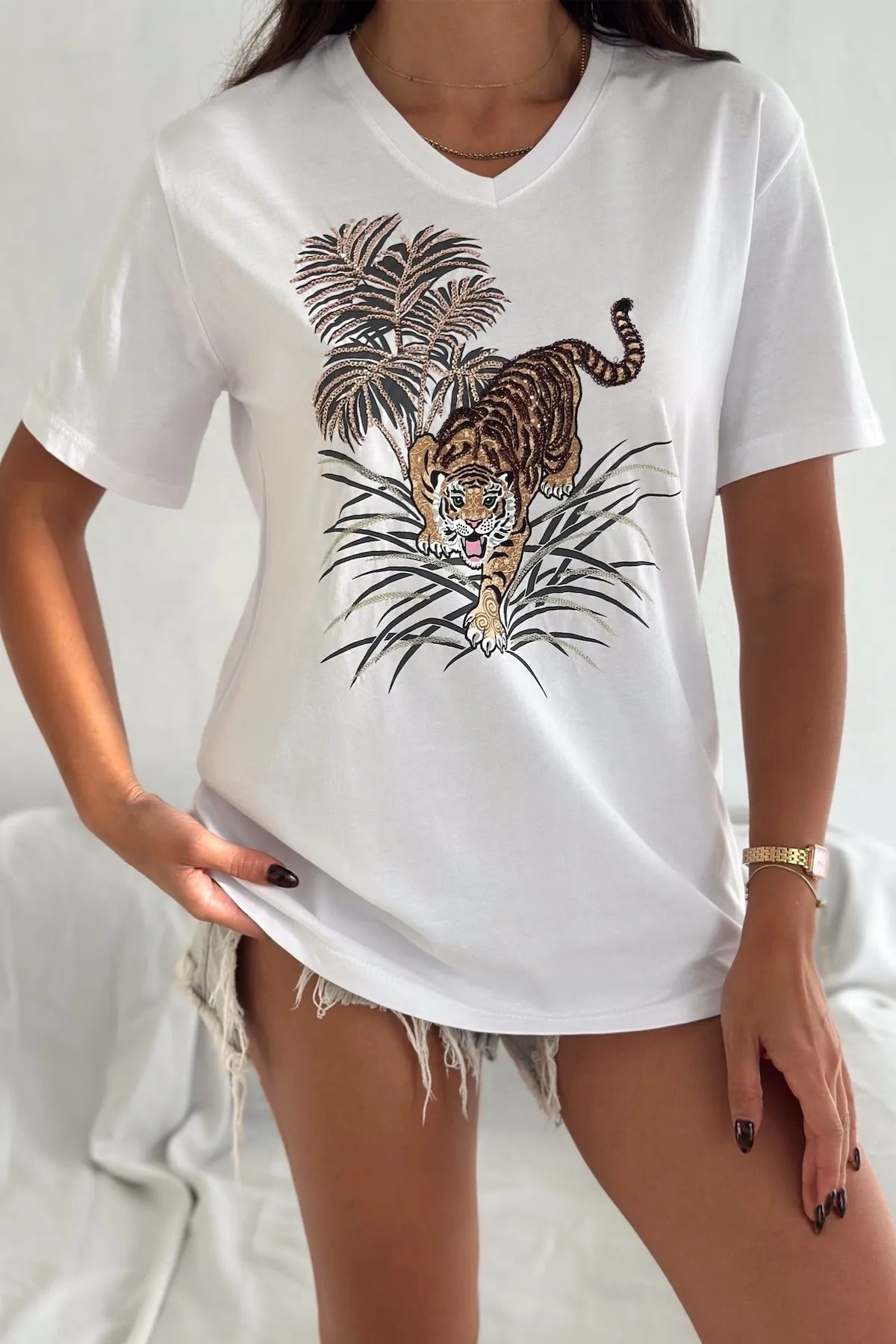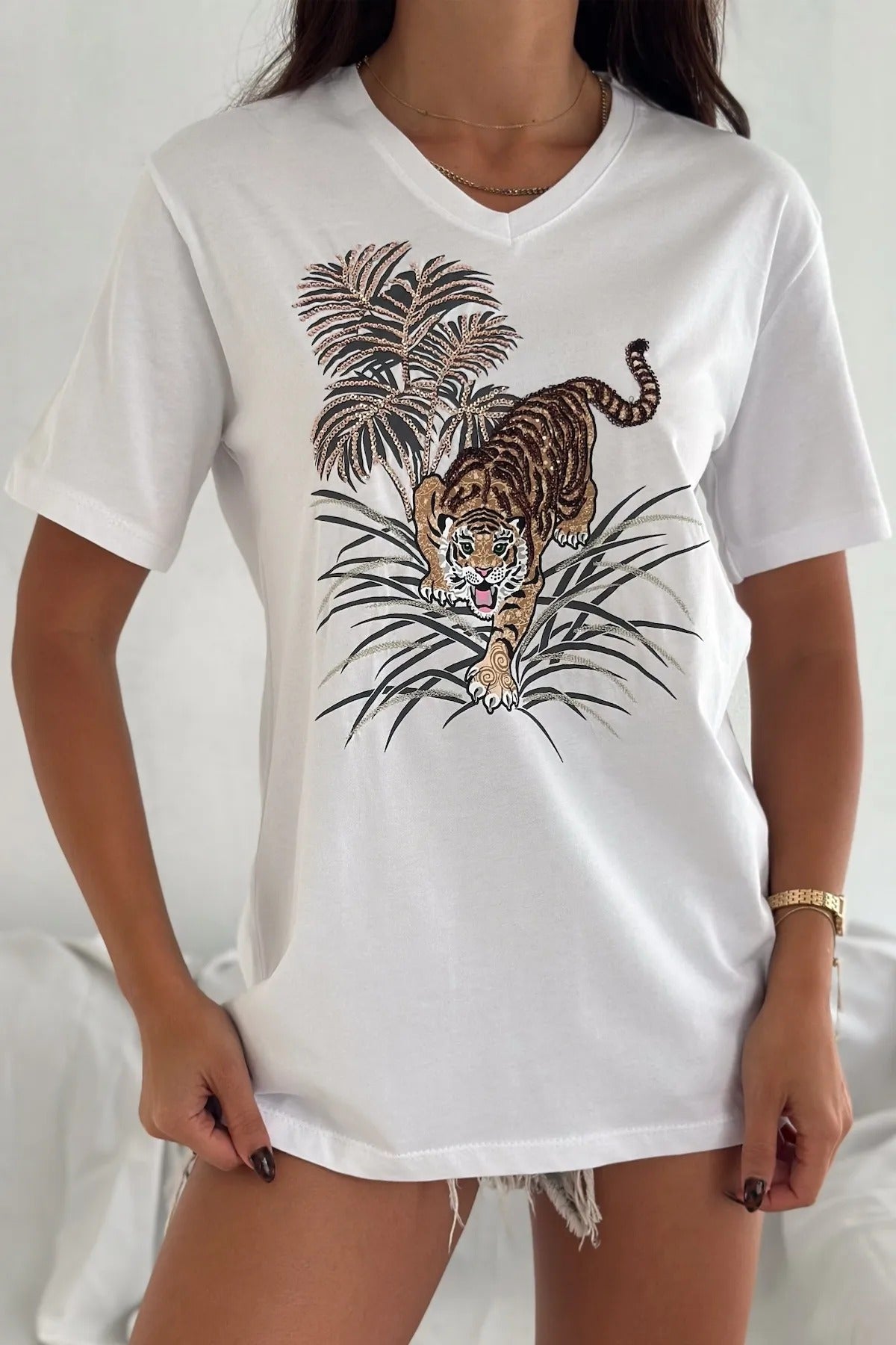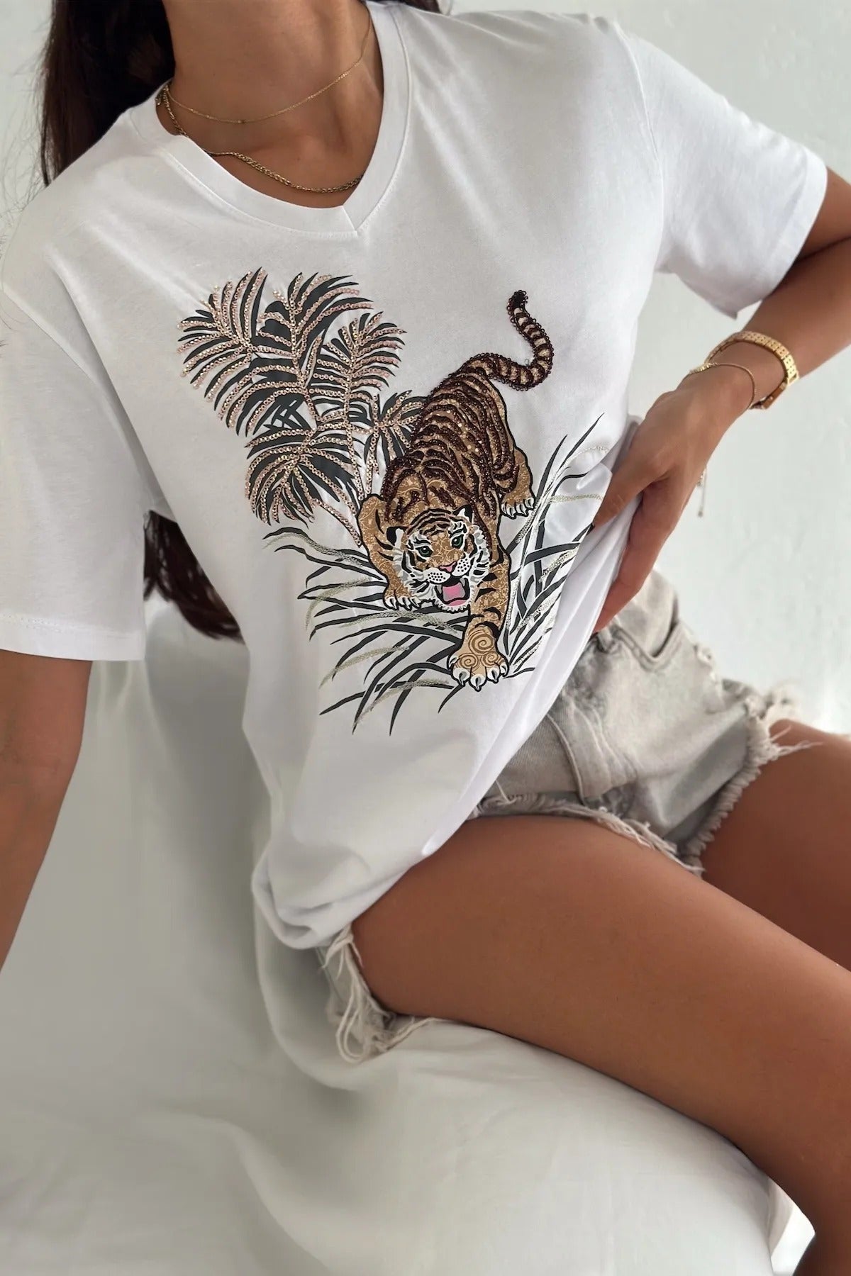 - Zahmetsizce Şık: Klasik beyaz tişört, göz alıcı detaylarla farklı bir görünüme kavuşturularak eşsiz bir temel parça haline getirildi.