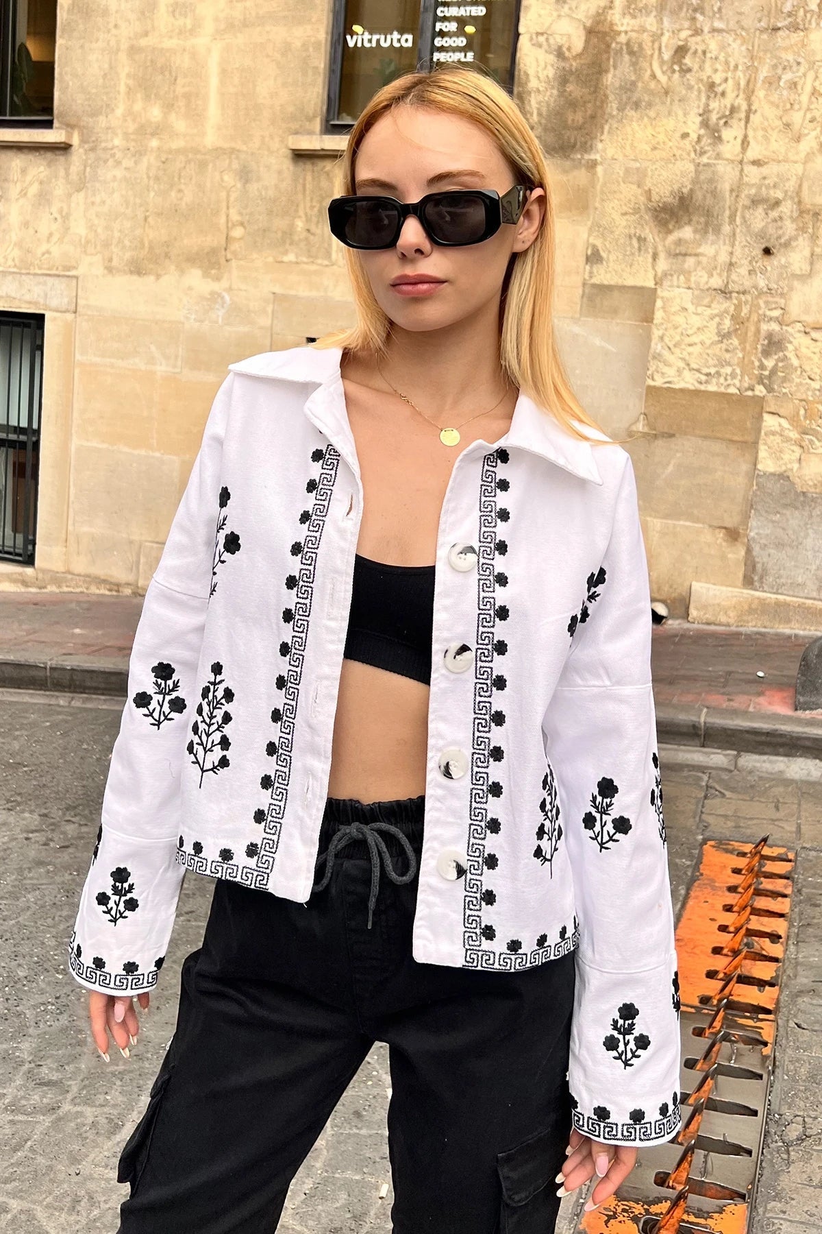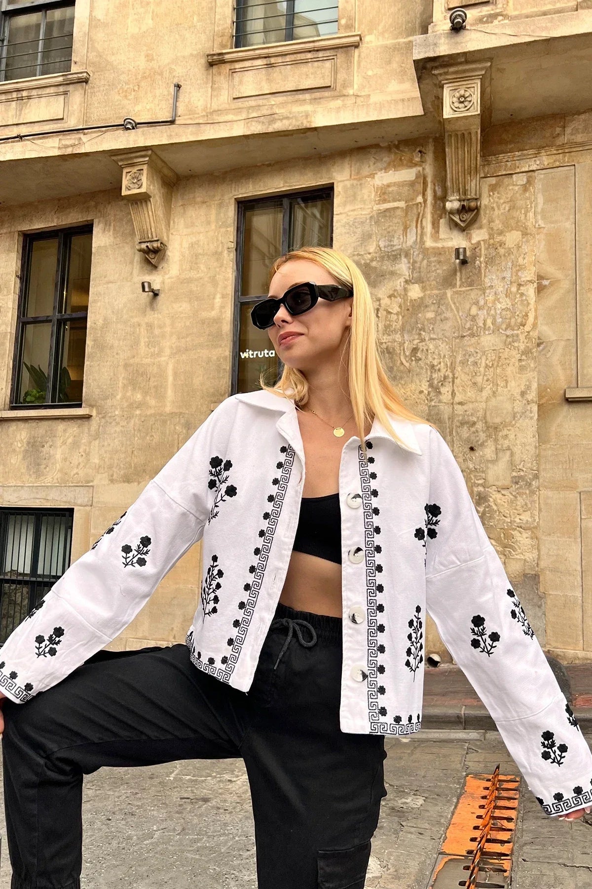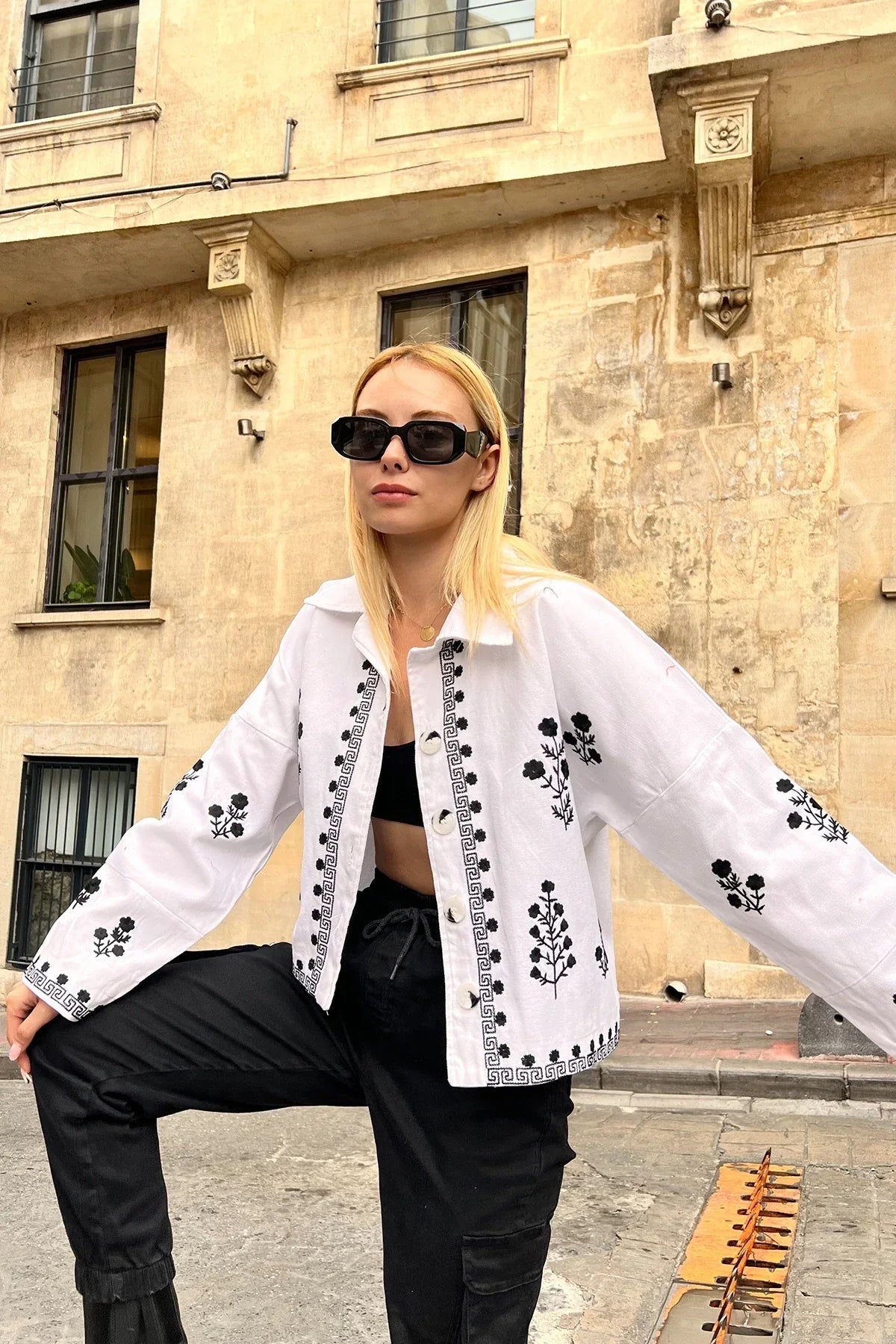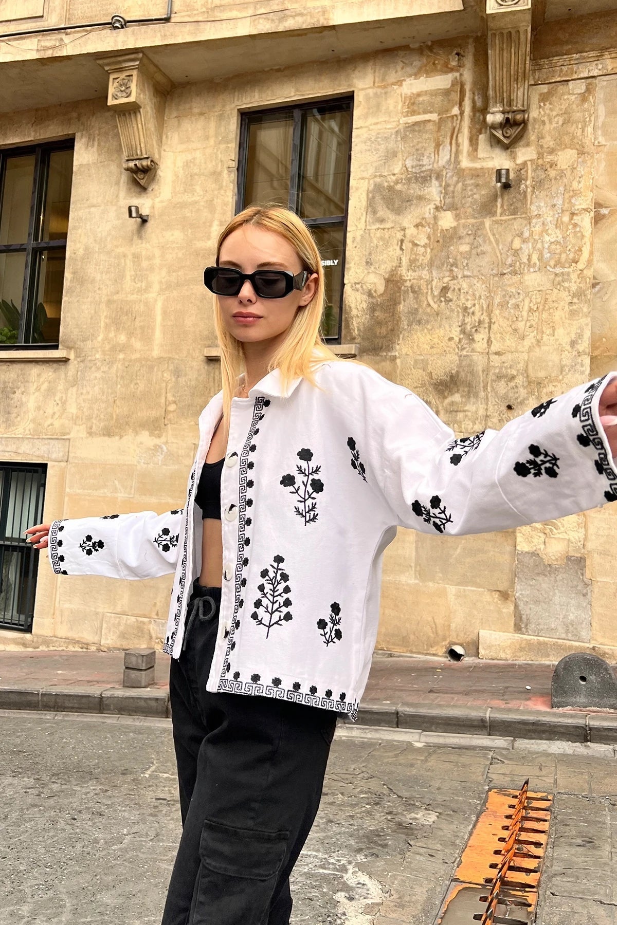 - Şık Nakış: Şehirli ama klasik bir estetik için sofistike siyah çiçek nakışlarıyla süslenmiştir.